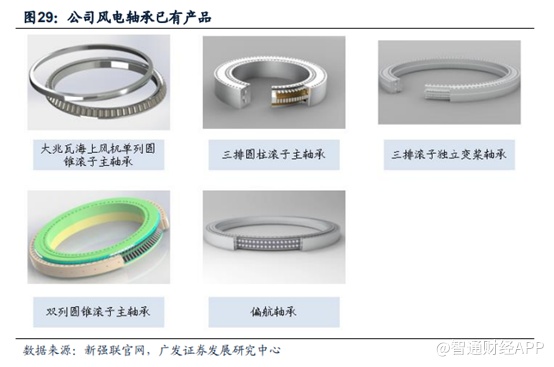 新强联已经可以为客户批量供应偏航变桨轴承、三排滚子独立变桨轴承、三排圆柱滚子主轴承、圆锥滚子主轴承等风电轴承,轴承产品应用于1.5MW、2MW、3.XMW、4.XMW-8MW等风机。目前,大兆瓦的双列圆锥主轴轴承、单列圆锥主轴轴承、三排圆柱主轴轴承已经开始验证,考虑到风电轴承产品较长的客户认证周期,在验证时间上,公司的领先优势有望保持。