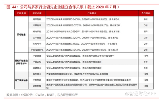 客户方面,目前公司已与多家整机厂商建立合作关系,如明阳智能、湘电风能、东方电气、远景能源、三一重能等。