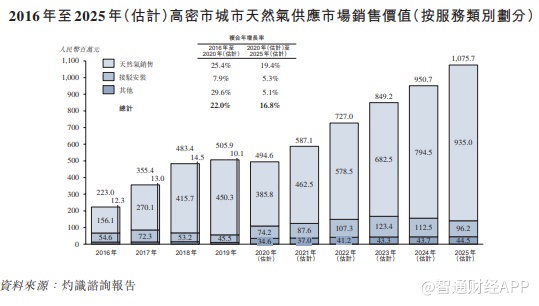 从宏观到微观看交运燃气所在的高密市情况。据智通财经APP了解,高密市为位于泰青威管道及昆仑管道经营所在地山东省的枢纽。数据显示,高密市天然气消耗量预期将在2025年达到2.71亿立方米,其在2020年至2025年期间达到复合年增长率16.2%。