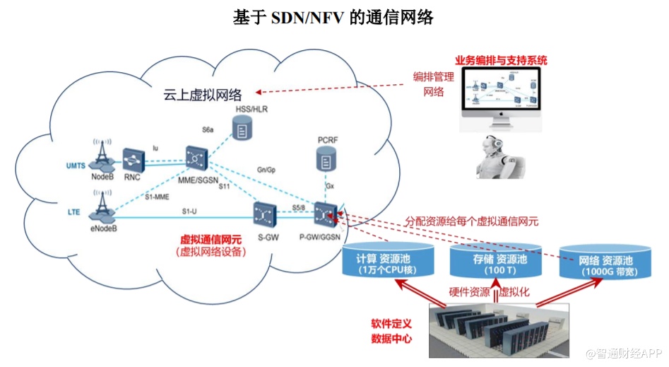 软件定义通信网云是对通信网元的云化,是对传统物理通信网元设备的替换和升级。软件定义网元具有可编程、弹性伸缩和集约高效等特性,这都是传统物理通信网元不具备的;其作用是通过软件优化网络功能,让网络基础设施更智能和灵活。