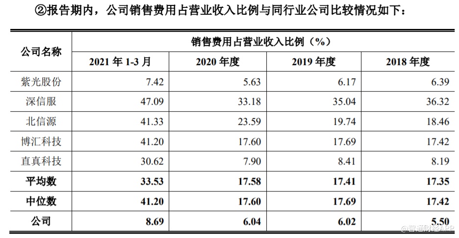 值得注意的是,赛特斯的运营费用分布与同行业公司有明显区别,相较而言,赛特斯的销售费用占比较低,2018至2020年时,公司销售费用占收入的比例与深信服(300454.SZ)、北信源(300352.SZ)、博汇科技(688004.SH)相比有高达十多个点的差距。