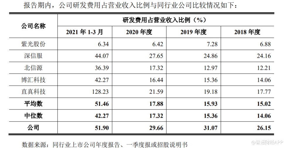 而赛特斯运营费用的重头戏是在研发。据招股书显示,2018至2020年,赛特斯的研发费用占比分别为26.15%、31.07%、29.66%,明显高出同行业可对比公司研发费用占比的中位数、平均数,差距高超10个百分点。赛特斯表示,公司是研发驱动的技术型公司,而不是由销售驱动。