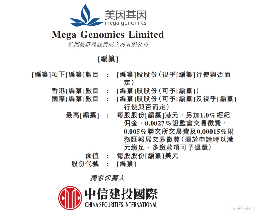 智通财经APP获悉,据港交所2月17日披露,基因检测平台公司美因基因(Mega Genomics Limited)向港交所主板提交上市申请,中信建投国际为独家保荐人。值得注意的是,该公司曾于去年8月16日向港交所主板递表,该申请目前已失效。