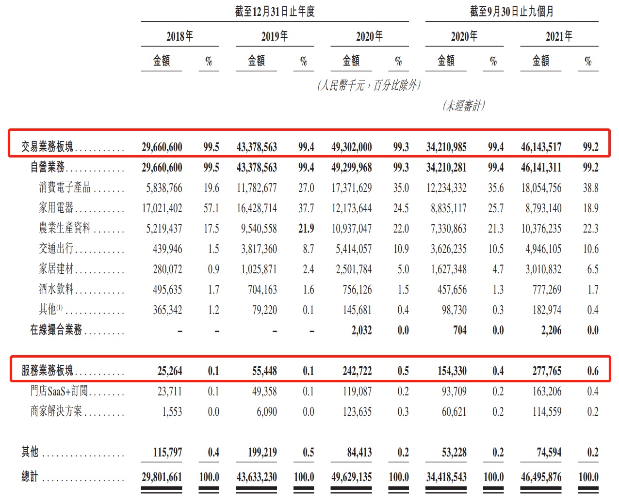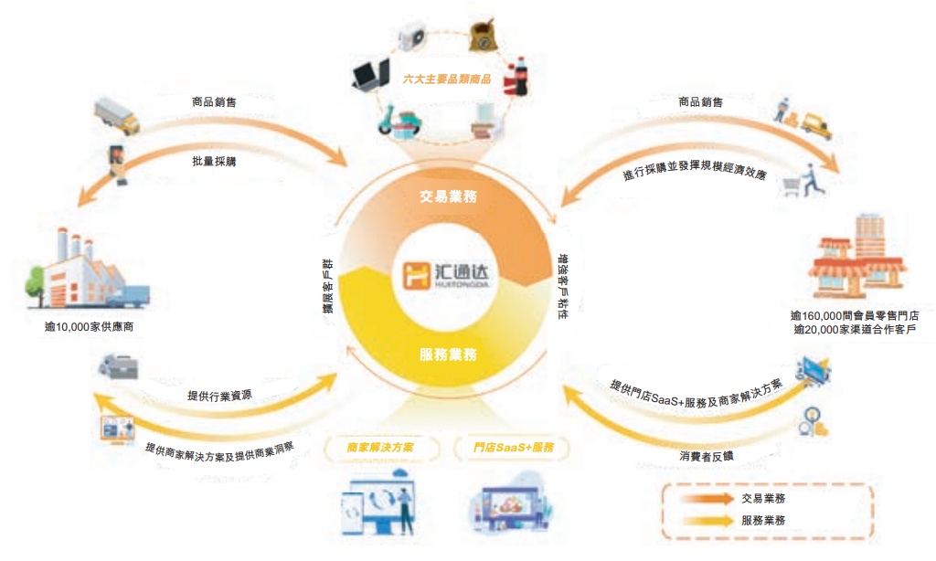 交易业务方面,作为汇通达网络的主营业务,主要为在下沉市场经营的企业客户提供服务,包括零售门店以及渠道合作客户,同时主要通过自营模式以及撮合模式经营。