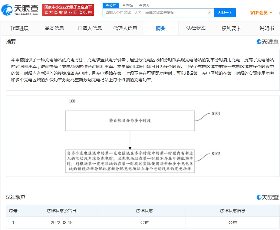 智通财经APP获悉,天眼查App显示,2月18日,华为数字能源技术有限公司申请的“充电场站的充电方法、充电装置及电子设备”专利公布。摘要显示,本申请通过分充电区域和分时段实现充电场站的功率分时复用充电,提高充电场站的综合时间利用率。