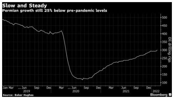 市场预计美国页岩油产量到2023年将恢复到大流行前的水平,但在独立勘探巨头“不合作”的前提下,可能不足以让油价在短期内脱离上行轨道。