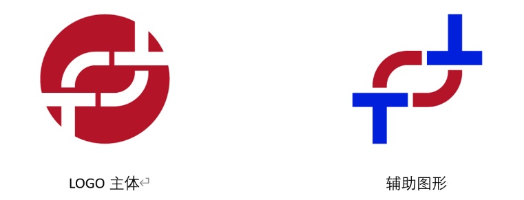辅助图形红蓝相间、反差明显,易识易记;亦能精确传达企业金融(红)和科技(蓝)的行业属性。