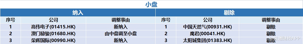 小盘股此次共纳入3只港股,其中高伟电子(01415)、荣晖国际(00990)为新纳入标的;中国天然气(00931)等3只港股被剔除。
