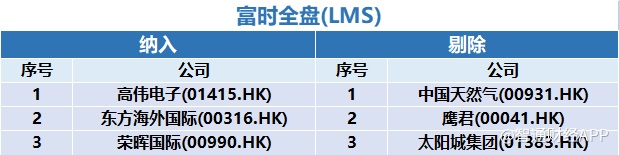 富时全盘指数(LMS)此次纳入高伟电子(01415)、东方海外国际(00316)等3只港股,剔除中国天然气(00931)等3只港股。