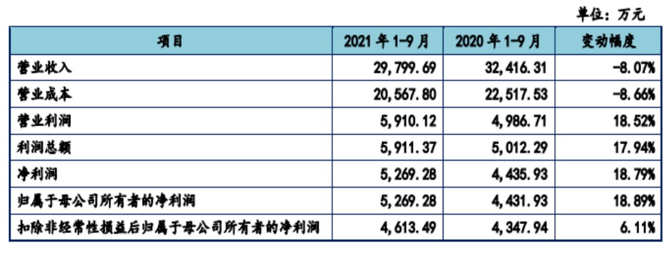 东田微在招股书中披露,2021年前三季度公司营业收入为2.98亿元,同比下滑8.07%,净利润为5269.28万元,同比增长18.79%。公司初步测算,预计2021年营业收入约为4亿元至4.1亿元,同比下降12.66%至10.48%;预计2021年归属于母公司股东的净利润为6800万元至6900万元,同比上升0.31%至1.78%;预计2021年扣非后归属于母公司所有者的净利润为6100万元至6300万元,同比下降6.1%至3.02%。