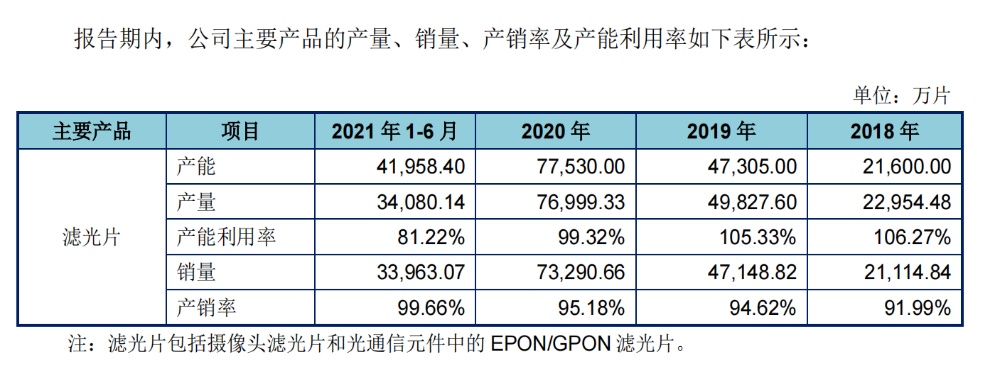 智通财经APP注意到,尽管手机出货量未及预期和欧菲光因各种不利因素导致其采购规模的大幅下滑,但东田微主要产品的产能仍保持了较高的利用率。2021年上半年,公司滤光片的产能利用率为81.22%,产销率高达99.66%。