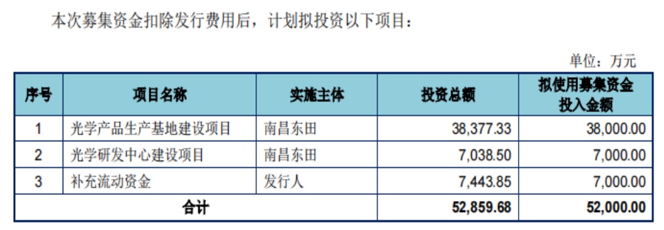行业具备良好的成长前景,东田微也意欲加强产能布局,公司计划投资3.84亿元在南昌新建建筑面积为 5.52万平方米的生产基地。项目建成后拟新增年产红外截止滤光片组件2.6亿个,光通信元件(主要为 CWDM滤光片)3500万个的生产能力,项目达产后可新增年营业收入3.77亿元。公司称,该项目的实施有利于突破公司的产能瓶颈,提高产品生产效率和产品交付能力,增强公司的综合竞争能力,巩固在行业中的领先地位。