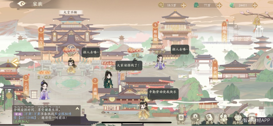 作为构建玩家间社交的重要场景,家族系统不可或缺。家族是凌云诺手游内一个非常重要的玩法,玩家可以在家族中找到志同道合的伙伴进行家族活动,以获得深入的游戏内社交体验。例如,醉仙楼是家族举办宴会的重要场景,在醉仙楼内玩家可以自己制作美食,提交食材任务领取对应的奖励,另外醉仙楼内晚上还会举行家族聚餐等特色限时活动。