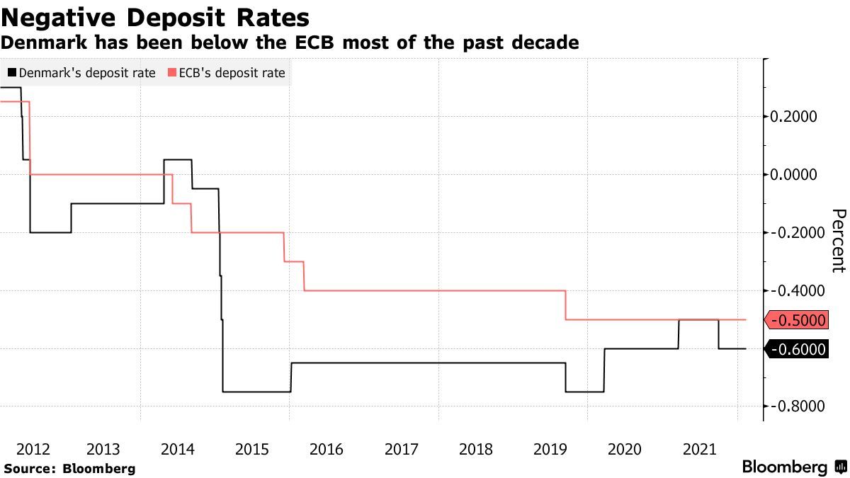 世界上历时最长的“负利率试验”可能即将结束,全球最早及时间最长的实施负利率国家之一:丹麦的中央银行准备跟随其邻居欧元区的加息步伐。