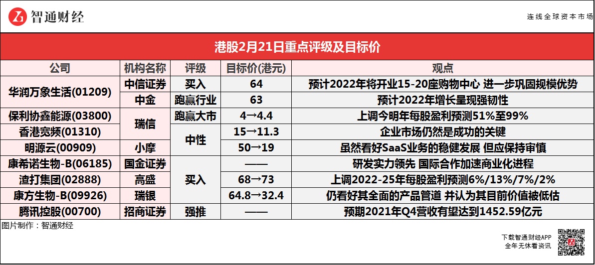 中信证券维持华润万象生活(01209)“买入”评级,预计其在商管领域的高壁垒和稀缺性长期而言很难被撼动,物管领域也有高质量跨越式成长的可能性,鉴于新并购等因素,小幅调整盈利预测2021-23年0.75/1.05/1.41元(原0.75/0.97/1.29元),维持2022年50倍PE估值,目标价64港元。