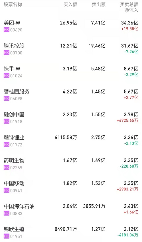 美团-W(03690)获净买入32.15亿港元。消息面上,此前发改委文件称,引导外卖等互联网平台企业进一步下调餐饮业商户服务费标准,消息引发美团股价巨震。花旗表示,这些政策是暂时性的,此外通知中规定对中高风险地区的商家予以支持,但这些商家仅占总体订单量的少数,对美团构成影响有限;大摩表示,虽然由于美团对餐厅及商户的收费较高,包括对商户的收费,预计短期内其外卖业务会受到影响。但这不会是一项永久性规定,且随着疫情整体逐渐转好,美团的食品配送量恢复有望;小摩表示,该政策在未来几个季度都不会对美团的财务状况产生大影响,依然看好美团在中国本地消费市场的长期增长潜力。