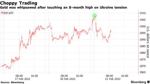 本周交易开始后不久,金价升至6月以来的最高水平,此前美国对盟国表示,俄罗斯可能将入侵目标瞄准乌克兰首都基辅以外的城市。俄方则一再否认其入侵计划,并在周末表示,其军队将无限期留在白俄罗斯。
