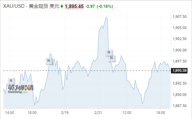 截至发稿,黄金价格小幅下跌0.16%,至每盎司1895.45美元,此前曾上涨至1908.34美元,为去年6月3日以来的最高水平。