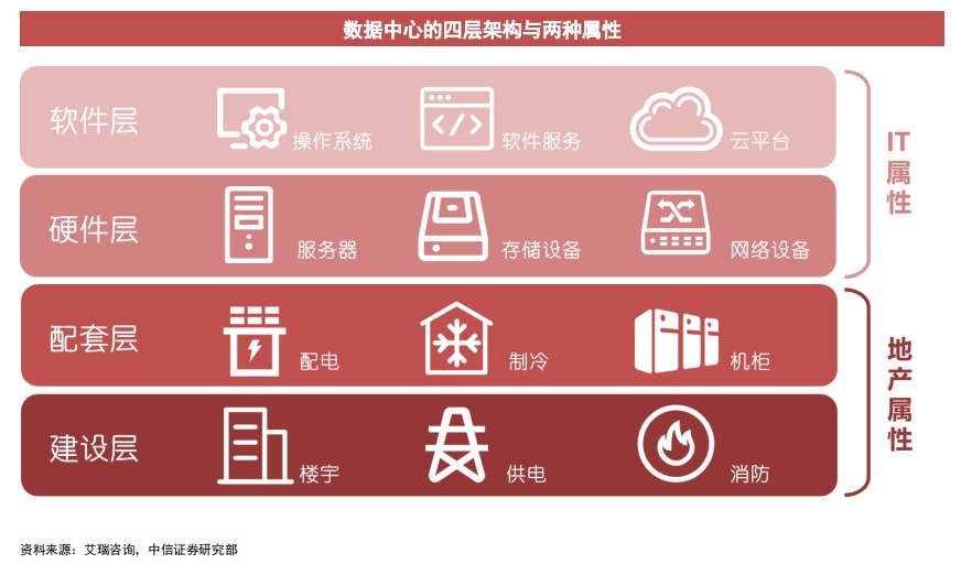 首先回到产业视角看,数据中心是技术密集型新型基础设施,IDC通过互联网为集中式收集、存储、处理和发送数据的设备提供运行维护的设施及相关服务。