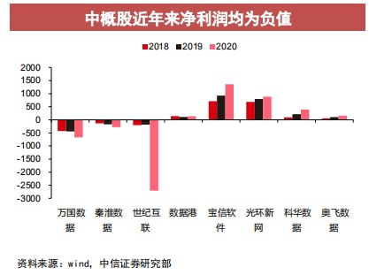 根据中信证券发布的研报看,目前国内第一梯队的IDC公司盈利表现大多差强人意,其中不少标的的净利润常年处于负值或微利状态。