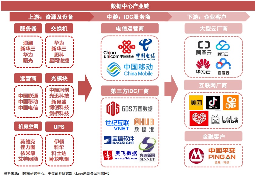 就标的来看,三大运营商以及包括数据港、光环新网、宝信软件在内的头部第三方IDC企业均具备极高的长期关注价值。