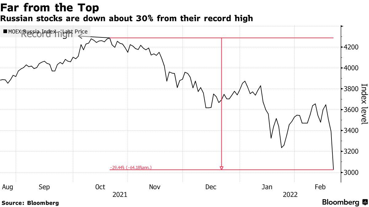 受此消息影响,俄罗斯交易系统指数 (RTS) 一度暴跌 17%,创下2008年以来最大盘中跌幅,俄罗斯MOEX股指收盘时下跌近11%,为俄罗斯吞并克里米亚以来的最大跌幅。卢布兑美元汇率更是一度突破80点关键水平。