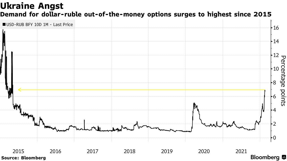 围绕乌克兰的紧张局势引发了市场对俄罗斯资产的抛售潮,而外汇对冲交易的巨大需求表明,交易员们预计这种紧张局势不会很快得到缓解。