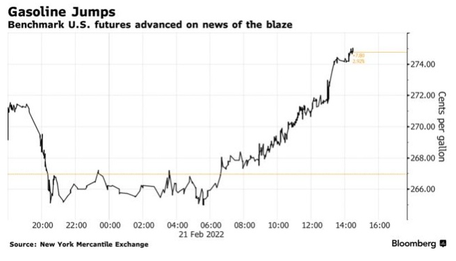 据知情人士透露,火灾因一个加氢裂化装置而起(加氢裂化装置是将重油分子分解成柴油等轻质产品的设备),如果任何损害严重到足以使加里维尔工厂停产,该地区燃料供应可能会趋紧。