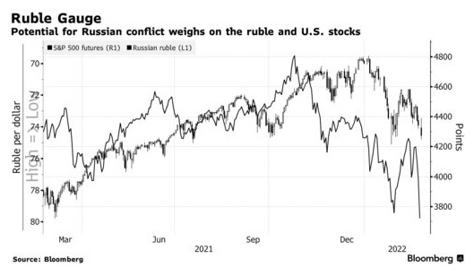 智通财经APP获悉,据高盛称,如果乌克兰爆发“全面冲突”再加上“惩罚性制裁”,可能会使标普500指数比上周五收盘水平再跌6%,欧洲和日本股市则可能面临更大跌幅。