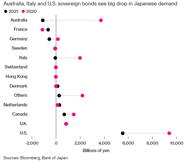 智通财经APP获悉,在美国国债创四十年来最差的年度开局之际,作为美债的最大外国持有者,日本投资者蠢蠢欲动将加大购买。据悉,近期招标情况显示海外需求强劲,基金经理暗示没有真正的选择。市场预期日本投资者将等待震荡的3月过去(市场普遍预期美联储将于3月首次加息),在4月为新财年的开启做准备。此前,由于对美联储加息步伐预期加快,日本投资者也是抛售美债的大户。