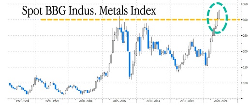 另一种引人注目的金属是锂,锂的价格飙升与俄罗斯关系不大,主要受电动汽车需求飙升的影响。值得提醒的是,Bloomberg工业金属分项指数继续创新高。