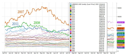 就季节性而言,镍价上一次在2月时处于这个水平,还是在本世纪初的大宗商品繁荣时期。