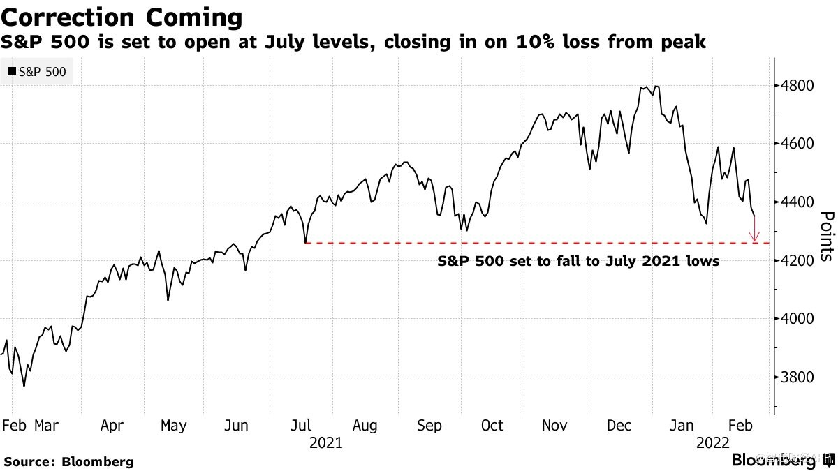 智通财经APP获悉,在乌克兰紧张局势加剧之后,欧洲和亚洲股市暴跌,当美股加入抛售行列时,市值损失可能达到约1万亿美元。