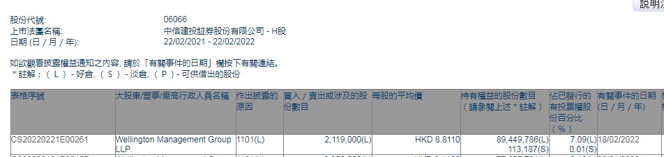 LLP增持中信建投证券(06066)211.9万股,每股作价8.811港元,总金额约为1867.05万港元。增持后最新持股数目约为8944.98万股,最新持股比例为7.09%。