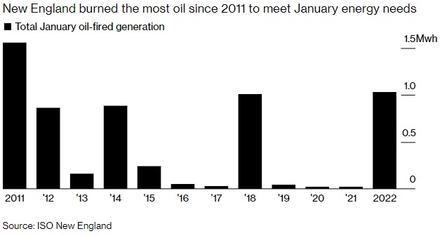 此外,价格也是重要的决定因素,虽然当前油价正逼近2014年以来的最高水平,但由于寒冷的天气刺激了供暖需求,该地区的天然气价格仍飙升至美国其他州水平的近五倍,相比之下,燃油发电往往比燃气发电更便宜。