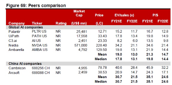 参考国内外同业 PS Ratio & EV/Sales(商汤2020.02.08 P/S ratio =53.3)