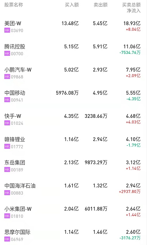 此外,中国移动(00941)、工商银行(01398)、赣锋锂业(01772)分别遭净卖出5亿、2.14亿、1.78亿港元。