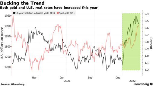 尽管如此,问题依然存在。如果地缘政治紧张局势缓解,金价能否维持在每盎司1900美元左右?瑞银财富管理部门上周表示:“黄金和美国实际利率之间的负相关性从未真正持续,这次也不例外。”