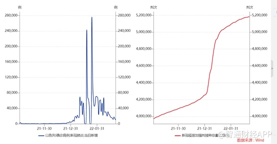 但由于奥密克戎的突袭,以色列新增确诊病例再次爆发,1月份单日新增最高超过27万例,但随着新冠疫苗接种数量的提升,目前以色列的新增确诊病例数也快速下降,截至2月22日数据显示,以色列的新增确诊病例为10107例,加强针总量达到518.32万针。 由此来看,以色列的加强针对于预防奥密克戎具有指导意义。