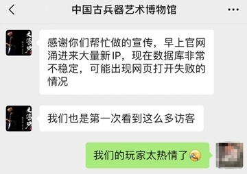 以《永劫无间》为例,去年11月,与平遥文涛坊古兵器博物馆的深度合作,广受好评。《永劫无间》以镇馆之宝“清中期玛瑙马首短刀”为原型打造了匕首纪念皮肤“马首刀”。一经上线, 600万网友挤入平遥古兵器博物馆官网,系统页面瞬间被挤爆崩溃,工作人员感叹:“第一次看到这么多访客”。
