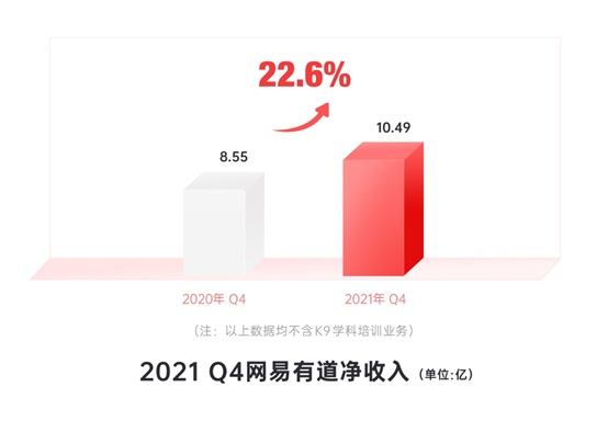 智通财经APP获悉,2月24日,智能学习公司网易有道(DAO.US)公布了2021年第四季度及2021财年未经审计财务报告。财报显示,网易有道2021年Q4净收入达10.49亿元(不含K9学科培训业务),同比增长22.6%,超市场预期。