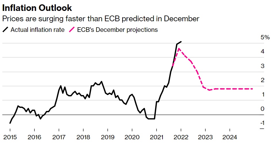 对俄罗斯的制裁和能源价格上涨的前景,正在增加欧洲央行在不损害经济复苏的情况下遏制通胀飙升的复杂性。欧洲央行预计将在3月10日的会议上概述其政策路径,届时还将发布新的经济预测。
