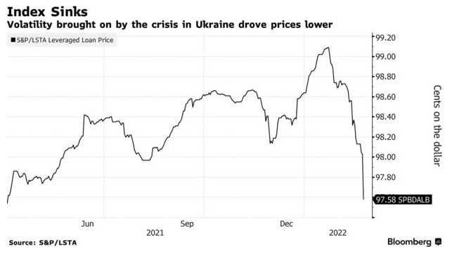 几个月来,美国的杠杆贷款一直是企业信贷中相对安全的避风港,但随着乌克兰冲突引发的紧张局势继续在市场上显现,杠杆贷款价格已经大幅下跌。