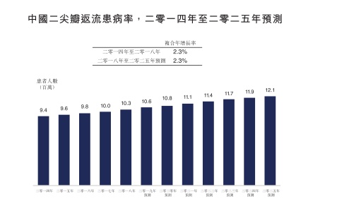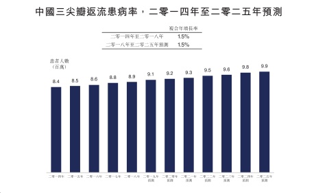 拿心脏瓣膜、神经介入市场来说,数据显示,在中国,二尖瓣反流患者人数复合年增长率为2.3%,且预期进一步增加至2025年的1210万人,2018年至2025年的复合年增长率为2.3%。三尖瓣反流患者人数由2014年的840万人增加至2018年的890万人,复合年增长率为1.5%,且预期进一步增加至2025年的990万人,2018年至2025年的复合年增长率为2.3%,二三尖瓣返流患者群体不断扩大。