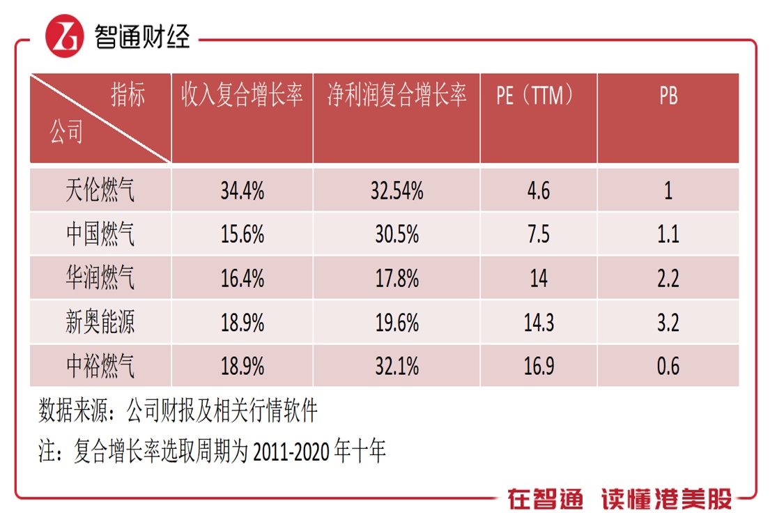 天伦燃气主要提供燃气销售和工程安装及服务业务,在过去十年,收入和股东净利润复合增速分别为34.4%及32.54%,收入端除了2020年受疫情影响外均保持双位数的增长,该公司每年都会分红派息,分享公司业绩成果,根据相关行情软件,目前股息率超过5%,远高于同行。