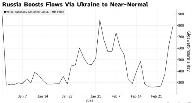 由于俄乌局势全面升级,天然气价格上涨,欧洲公用事业公司正在根据长期合同向俄罗斯天然气工业股份公司订购更多的天然气,这是因为这些交易的定价方式使得俄罗斯进口的天然气现在比在欧洲中心交易的现货天然气便宜。