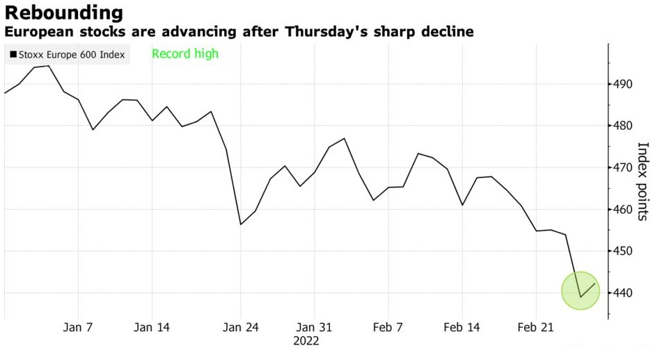 Beata Manthey等策略师写道:“历史表明,股市应该会反弹。”花旗的清单上写着“期望在这个时候买入”。欧洲股市周五有所回升,此前俄乌冲突全面升级,导致欧洲股市出现技术性调整。