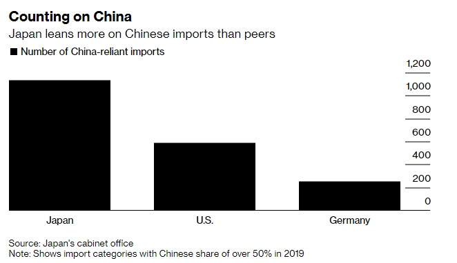 日本相较其他国家更依赖中国进口