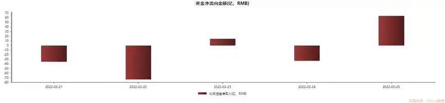 本周俄乌开战,市场表现惨淡,北向资金经历了大幅流出。不过在本周的最后一个交易日,北向资金却开启了抄底模式。数据显示,本周北向资金累计净流出64.13亿元。前4个交易日,有3个交易日北向资金出现大幅净流出;本周五,北向资金大幅流入63.85亿元。