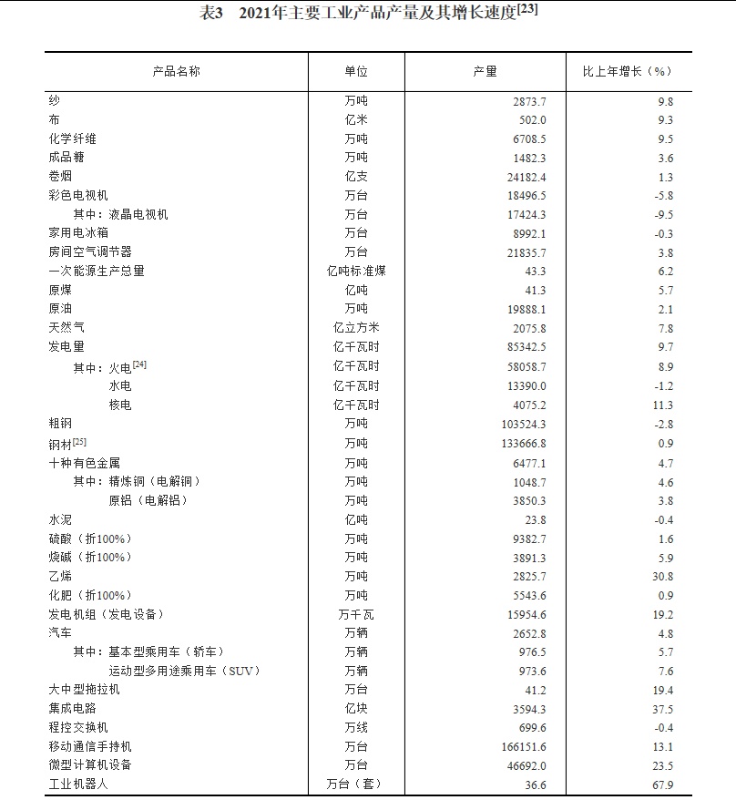 [23]2020年部分产品产量数据进行了核实调整,2021年产量增速按可比口径计算。